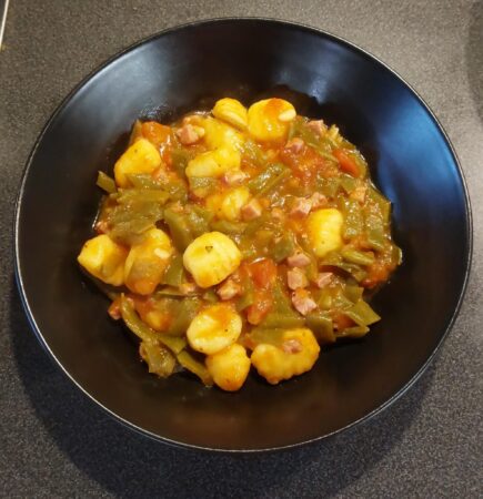 🌿 Schnippelbohnen in Tomaten-Kräuter-Sauce mit Schinken und Gnocchis
